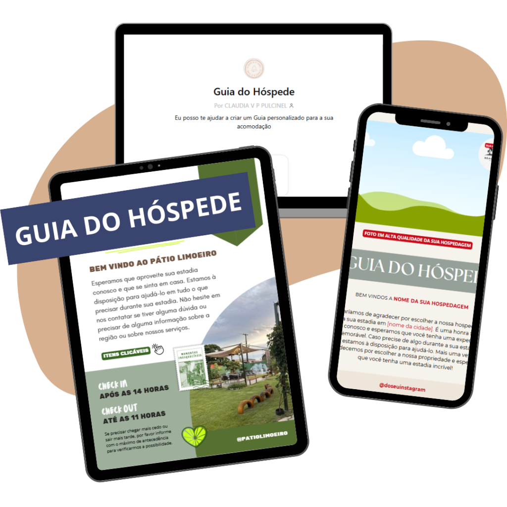 Modelo pronto do “Guia do Hóspede” para você fornecer ao seus hóspedes, de forma prática, rápida e segura, todas as informações para uma estadia tranquila.